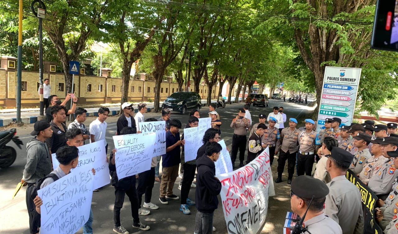 Desakan Dear Jatim ini disampaikan dalam bentuk aksi demonstrasi di depan Mapolres Sumenep, Senin (8/9/2025).