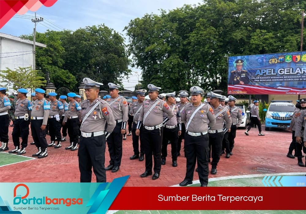 Melalui kegiatan Polisi Menyapa, jajaran Satlantas Polres Sumenep bersama unsur TNI, Basarnas, dan BNPB menggelar apel gelar pasukan kesiapsiagaan di Lapangan Apel Polres Sumenep, Selasa (4/11/2025).