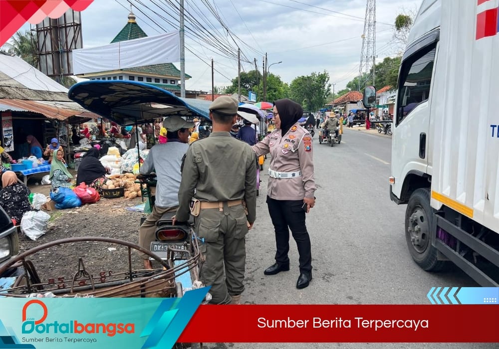 Selain sosialisasi, petugas juga membantu menertibkan arus kendaraan di kawasan pasar agar aktivitas jual beli berjalan lancar tanpa kemacetan.